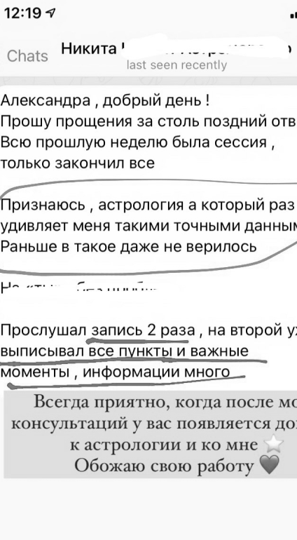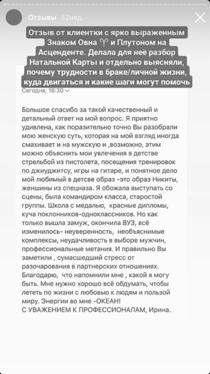 Член международной ассоциации астрологических исследований ISAR (USA). • Изучаю Западную Астрологию и консультирую с 2018 года. • Куратор на курсе «Натальная астрология» у известного астролога Марины Римша. • Автор нескольких пабликов по астрологии, автор личного паблика об интеллектуальной и англоязычной литературе.